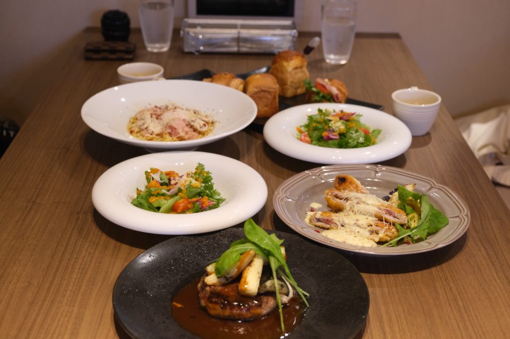 今回は追加メニューとしてパスタもオーダーしましたが、そのオーダーがなくともサラダとスープに加えパン2個が選べるとあって、かなりのボリューム感を感じました。