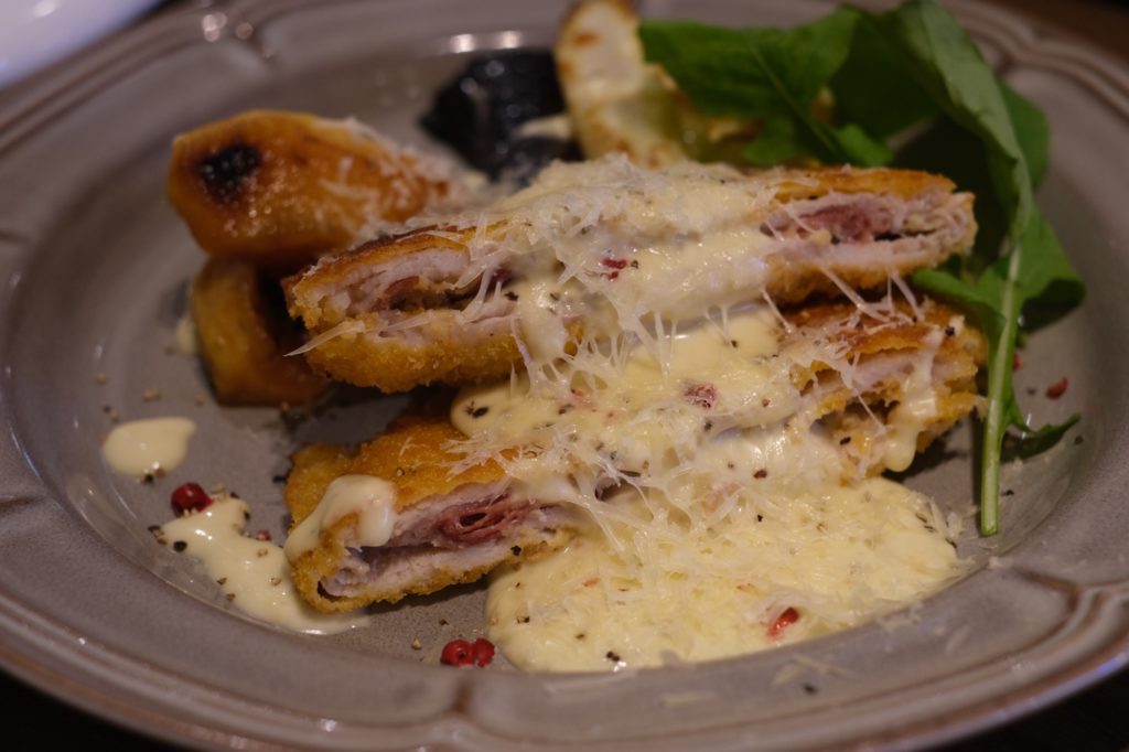 一口目のサクッとした食感とジューシーさと濃厚なチーズの風味のマリアージュが料理のレベルの高さを感じさせてくれる。