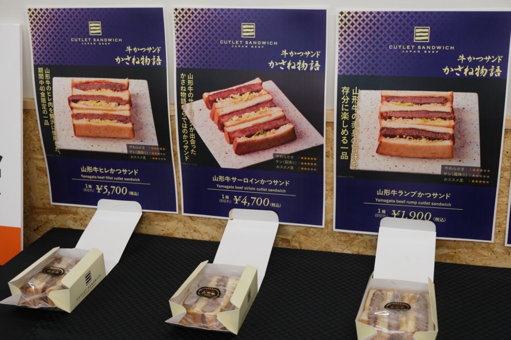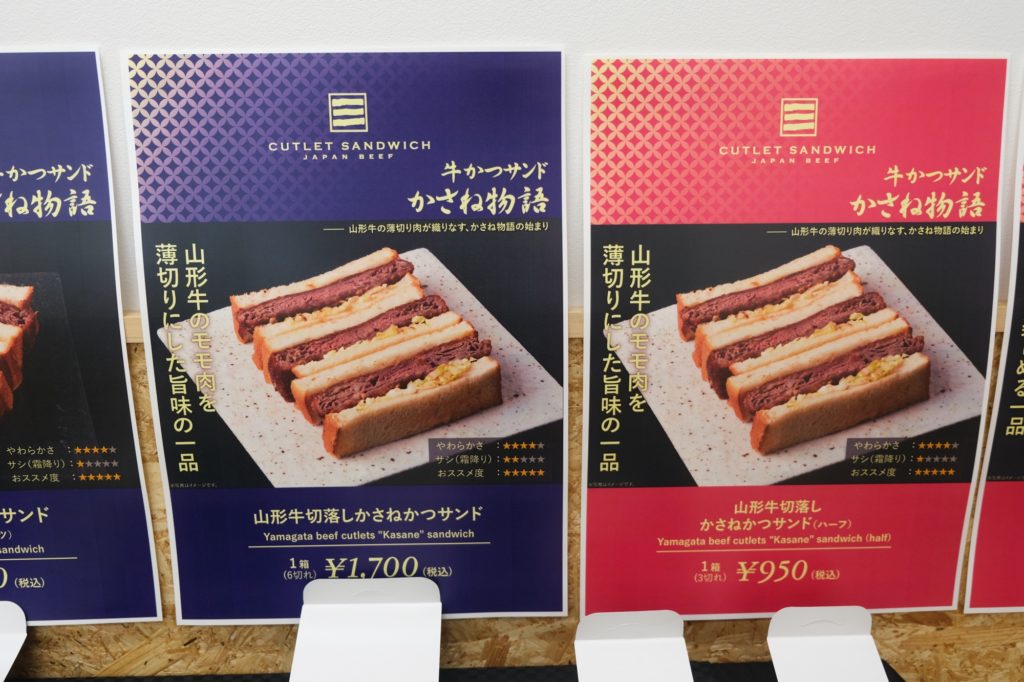 山形牛切落し かさねかつサンド:1箱(6切れ) ¥1,700・ハーフサイズ(3切れ) ¥950