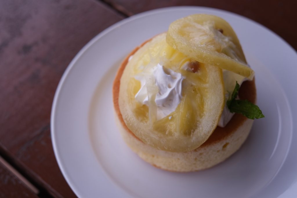 - スフレパンケーキレモン:ふわふわ生地にシロップ漬けレモンが絶妙。