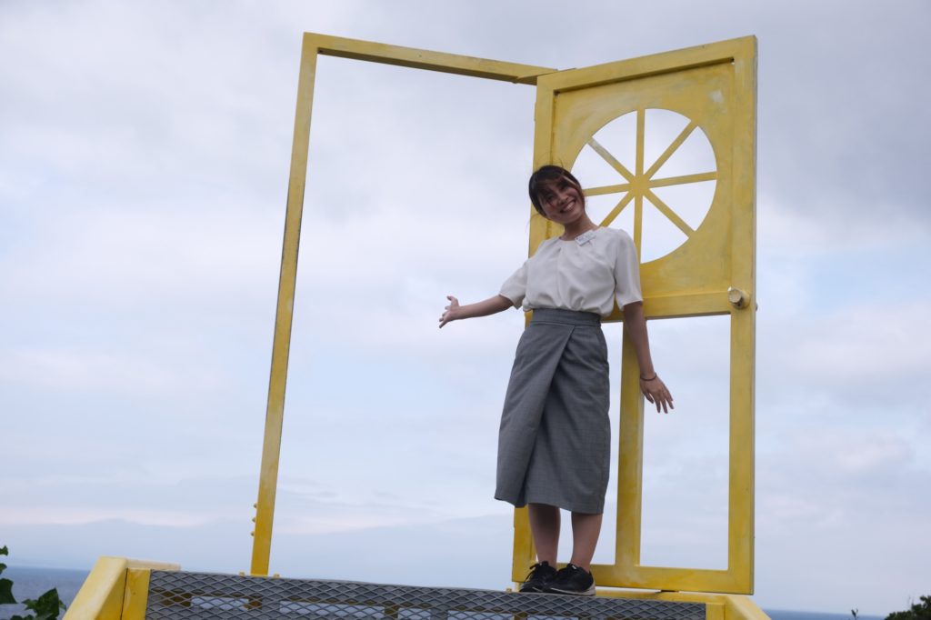 ヤシの木に吊るされたブランコに乗ると、まるで海に飛び込むような感覚。 - 黄色の装飾が施され、爽快感と映えを両立したスポット。