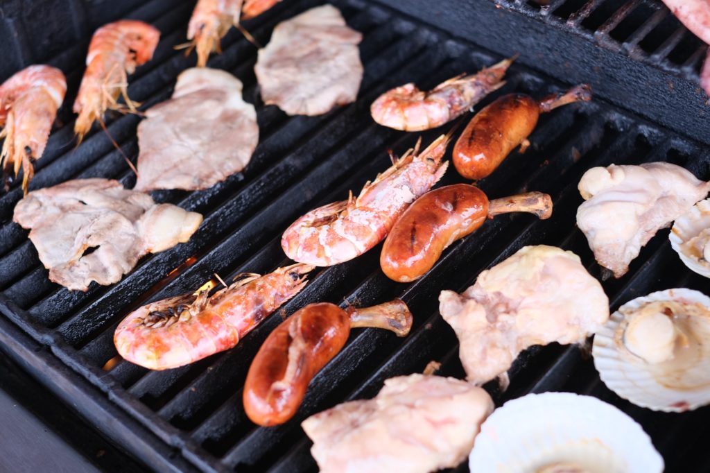 骨付きフランクや海老、帆立や豚肉・鶏肉・牛肉から焼き野菜、焼きおにぎりまでボリューム感も抜群のラインナップです。