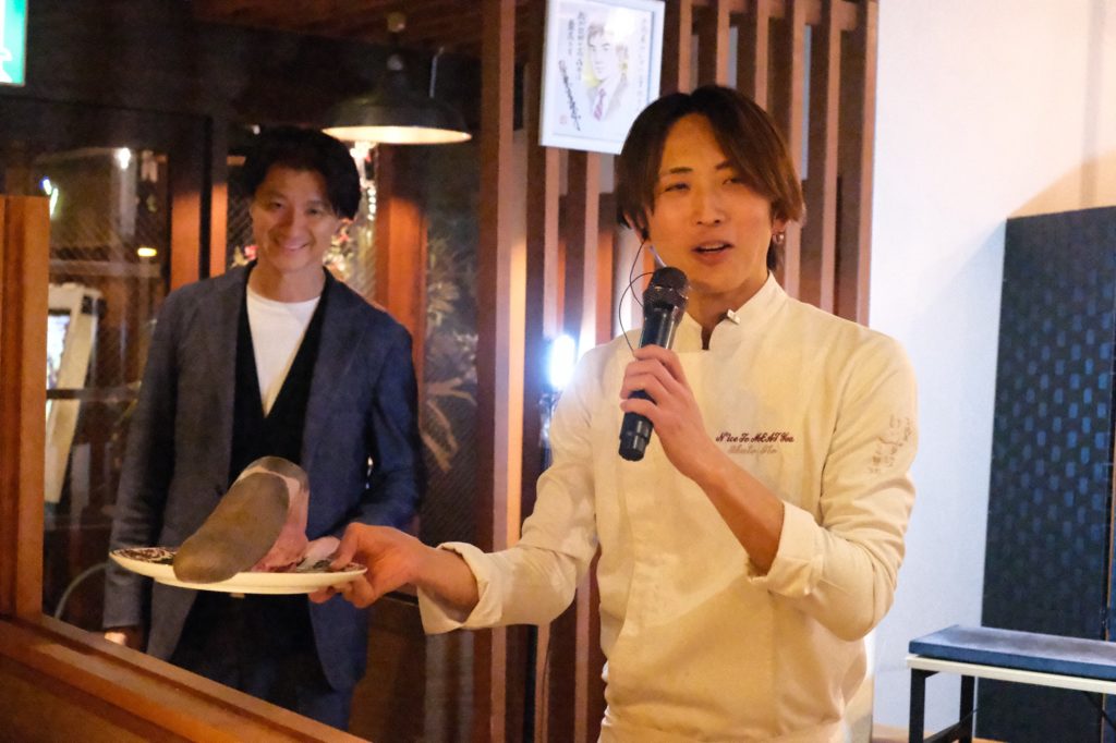 こちらはコース以外に追加したメニューとして、この日は特別に目の前でシェフの炎のパフォーマンスとして味わった一品。
