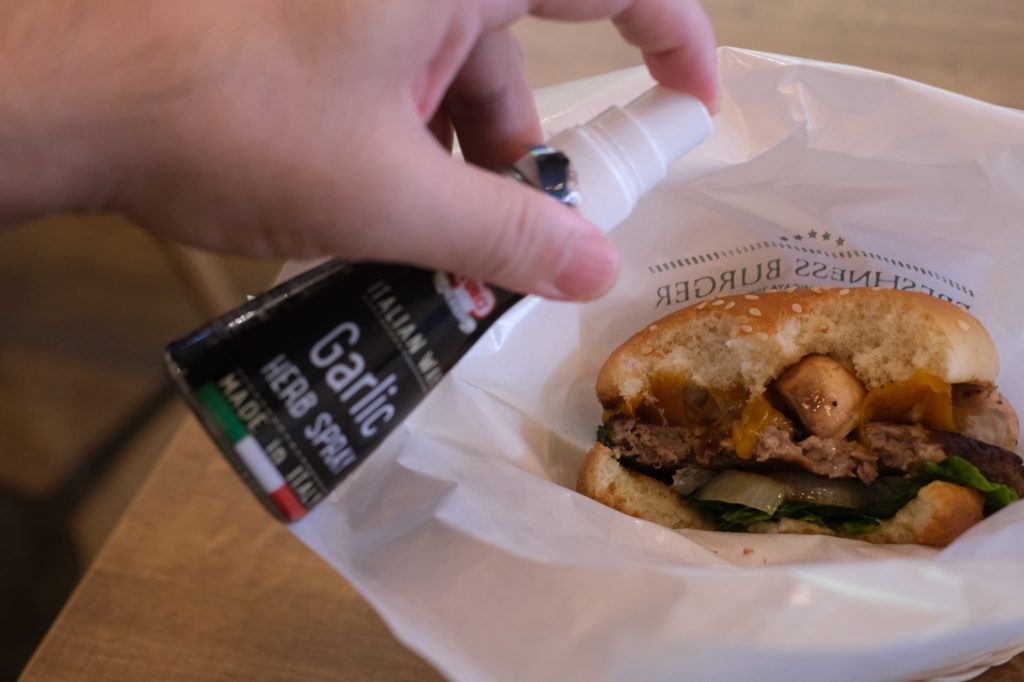 今回のマッシュルームチーズバーガーにオススメはGarlic HERB SPRAY。