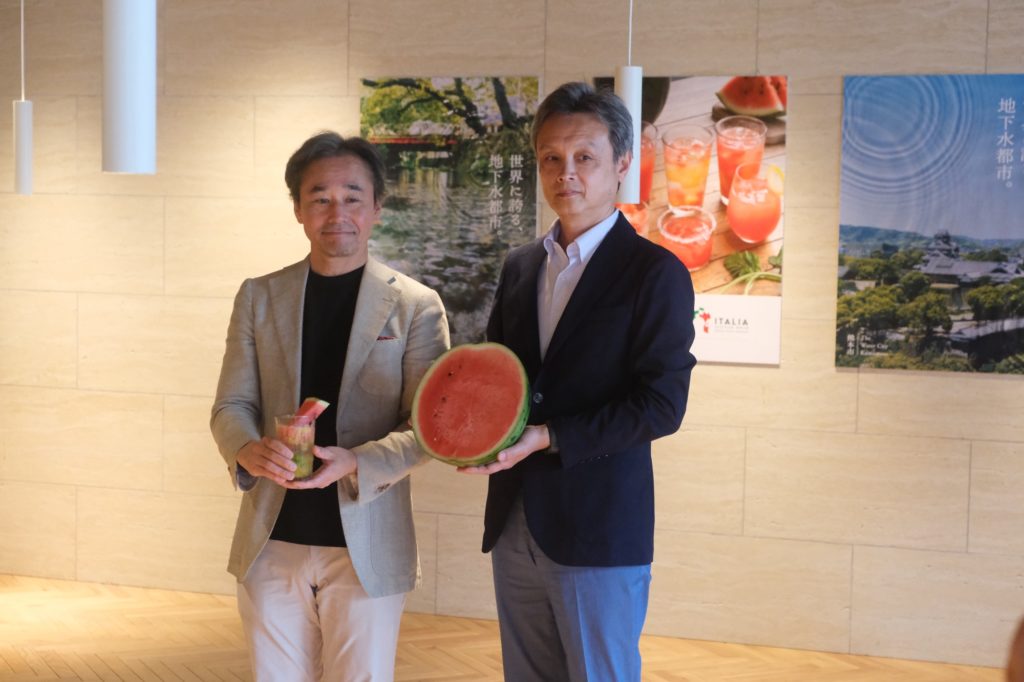 今回のコラボレーションはEATALYが春に旬の食材を使った打ち出しメニューを色々考えている中で、熊本市との関わりで「春スイカ」なるものがあるということを知り、話し合いを進める中で決まったそうです。