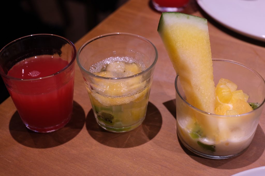 アルコールメニューとしてイタリア蒸留酒グラッパをベースにスイカの清涼感と甘みを活かし、それとは対照的にグラスの縁に塩を飾ったソルティドッグ(所謂スイカの甘みを引き立てる感じ)と、爽快な口当たりがこれからのシーズンにぴったりのジンフィズを提供しています。