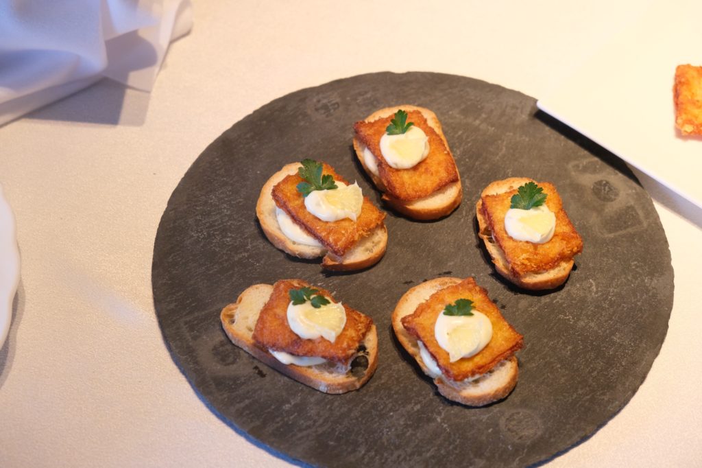 広島ワシントンホテルでは、広島名物の揚げかまぼこ「がんす」とバゲットを掛け合わせた「がんすの和風ブルスケッタ」を提供する。