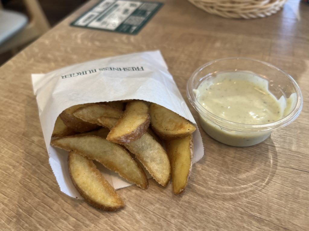 サイドメニューには定番の揚げたてポテトですが、こちらは東南アジアで愛される「バイマックルー(コブミカミカンの葉」と「レモングラス」を使った特製ディップソースを合わせてアジアの風を表現しています。
