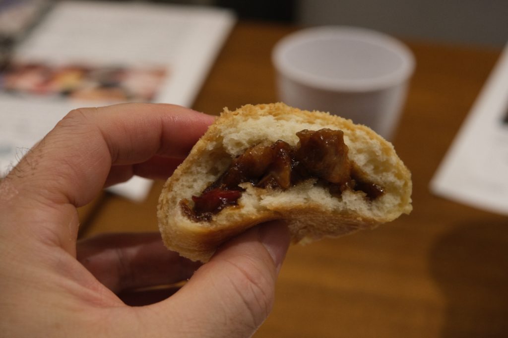 - 中は甘辛くとろりとしたチャーシュー餡