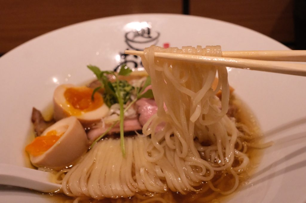 透き通るスープに北海道産「きたほなみ」小麦を使用した特注麺が絡み、素材の旨味を最大限に引き出している。