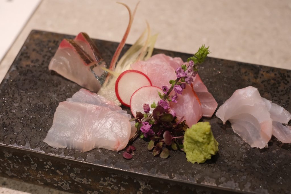 来訪時のラインナップは「縞鯵」「金目鯛」「小豆羽太」「グレ(メジナ)」という、いずれも白身魚の中でも旨みが際立つ構成で提供されました。