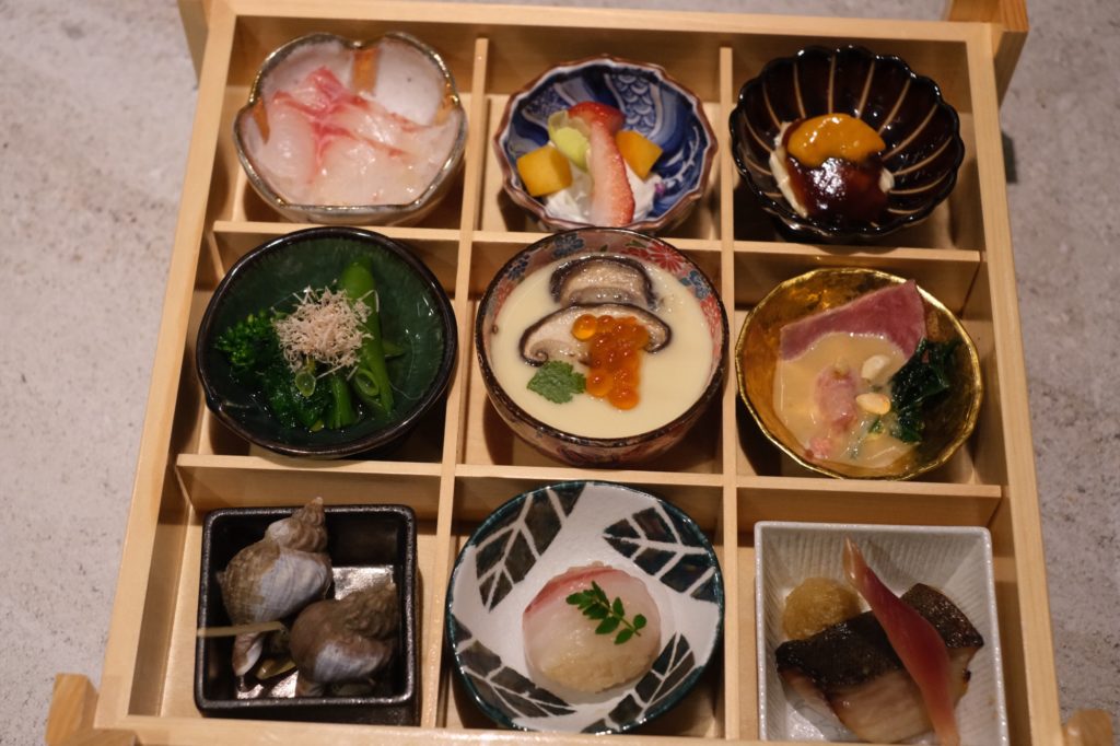 割烹の技術がもっとも端的に現れるのがこの”9種の季節の小鉢”。