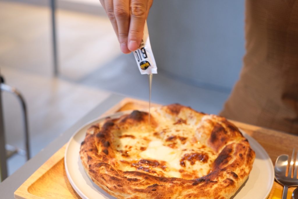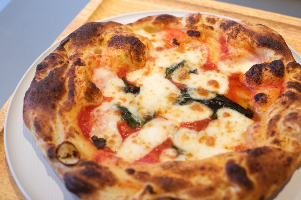 高加水のピンツァ生地を400℃の薪窯で一気に焼き上げることで、外はパリッと、中はふわもちの食感に。