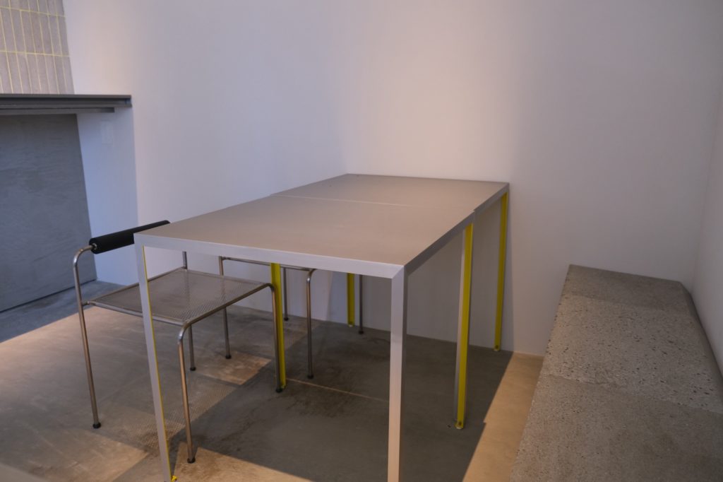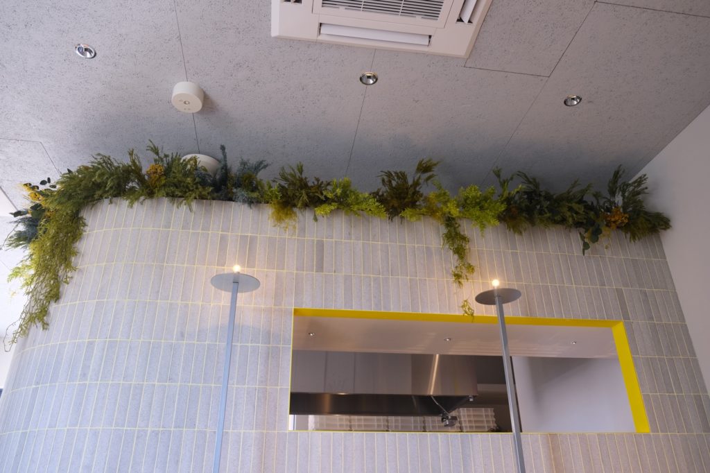 reloadのストリート感を取り入れた内装は、ステンレス製の家具とコンクリートベンチ、コンセプトカラーの黄色と緑が印象的。