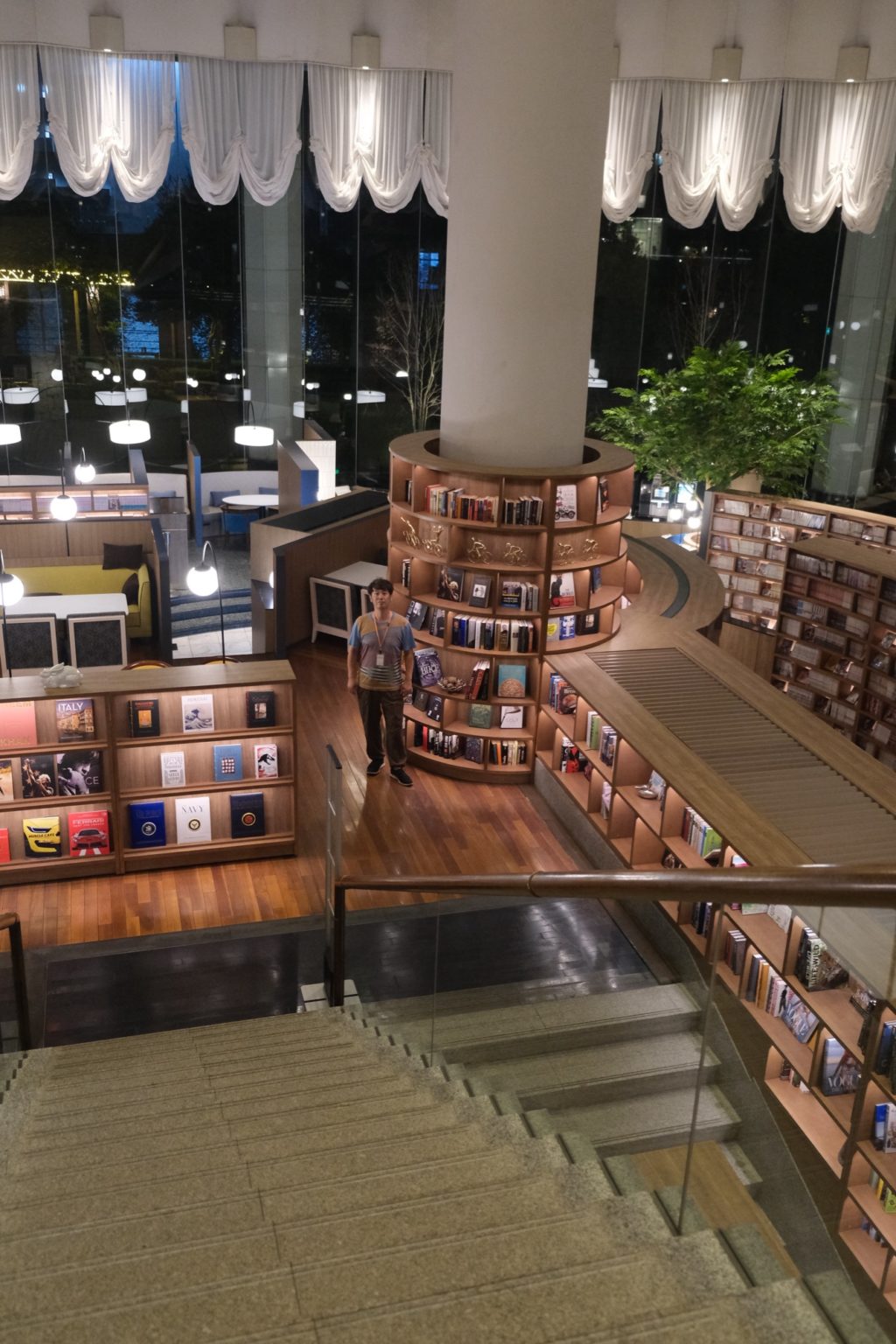 ラウンジは吹き抜け構造で、壁一面に並ぶ約25,000冊の本は圧巻のひとこと。