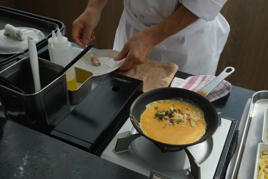シェフが目の前で調理するふわとろオムレツやホワイトオムレツ、ポーチドエッグなどが楽しめ、ライブキッチンならではの香りと食感は、朝から贅沢な気分にさせてくれます。