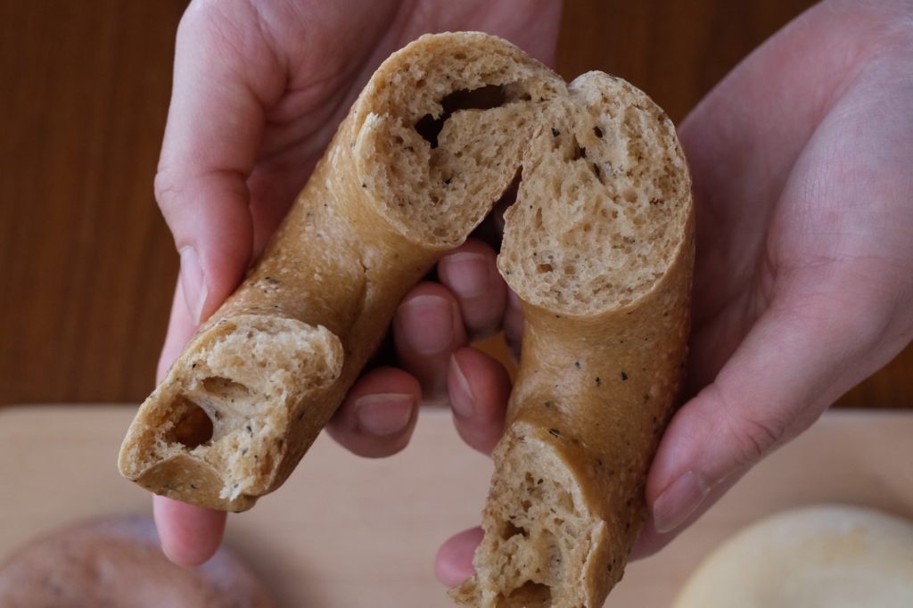 きな粉と黒豆を生地に練り込んだ、軽やかな食感と和の香ばしい風味が広がる朝食やおやつにも最適なベーグル。