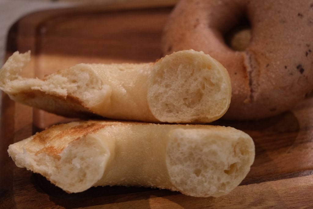 噛むほどに米粉特有の優しい甘みが広がり、炊き立てのお米のような香りとお餅のような食感が癖になる食事系にもスイーツ系にも合う万能ベーグル。