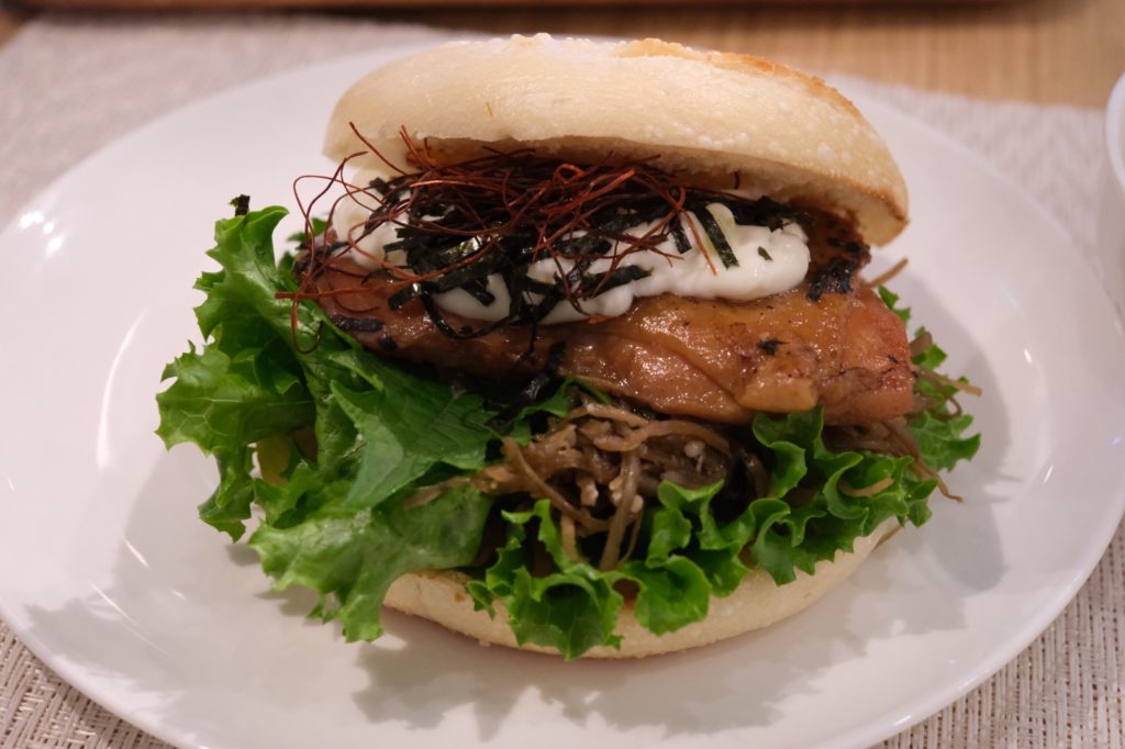米粉ベーグルのもちもち食感に、甘辛い照り焼きチキンとシャキシャキ牛蒡が絶妙にマッチ。