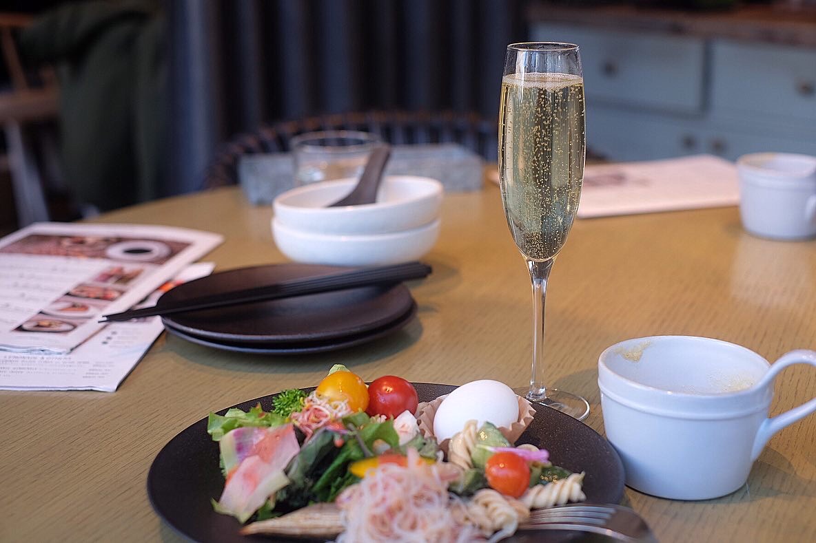 窓からの温かく明るい日差しを感じるシチュエーションが心地良く、思わず昼間からシャンパンを飲んでしまった・・・
